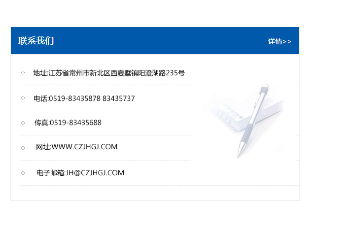 傳真:0519-83435688    郵編:213135    網址:WWW.czjhgj_com.qdjieting.com    電子郵箱:JH@czjhgj_com.qdjieting.com
